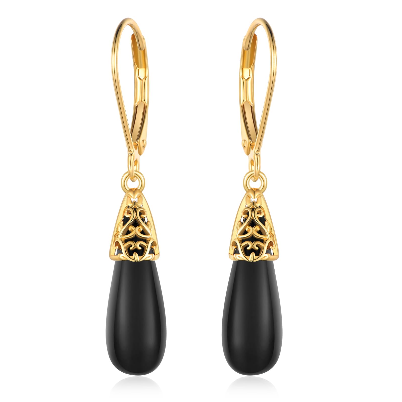 Obsidian Earrings Design: Introducing our Black Obsidian Teardrop Earrings, a perfect addition to your jewelry collection. These dangle earrings feature a sleek teardrop design with 14k yellow gold plated hooks for an elegant touch. Adorned with mesmerizing black obsidian gemstones, they exude a sen
