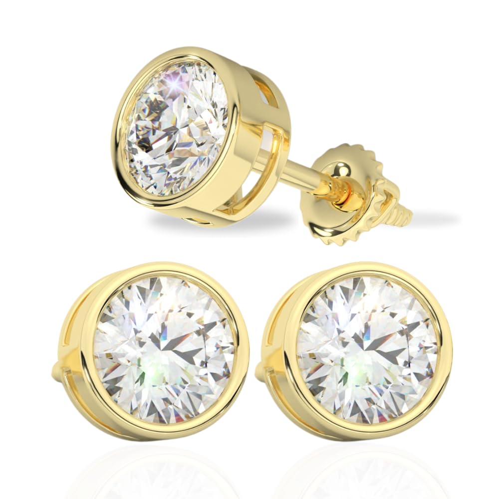 14K Solid Gold Lab Grown Moissanite Bezel Stud Earrings for Women | Round, Emerald, Cushion, Oval, Heart & Pear Cuts | Push Back & Screw Back |