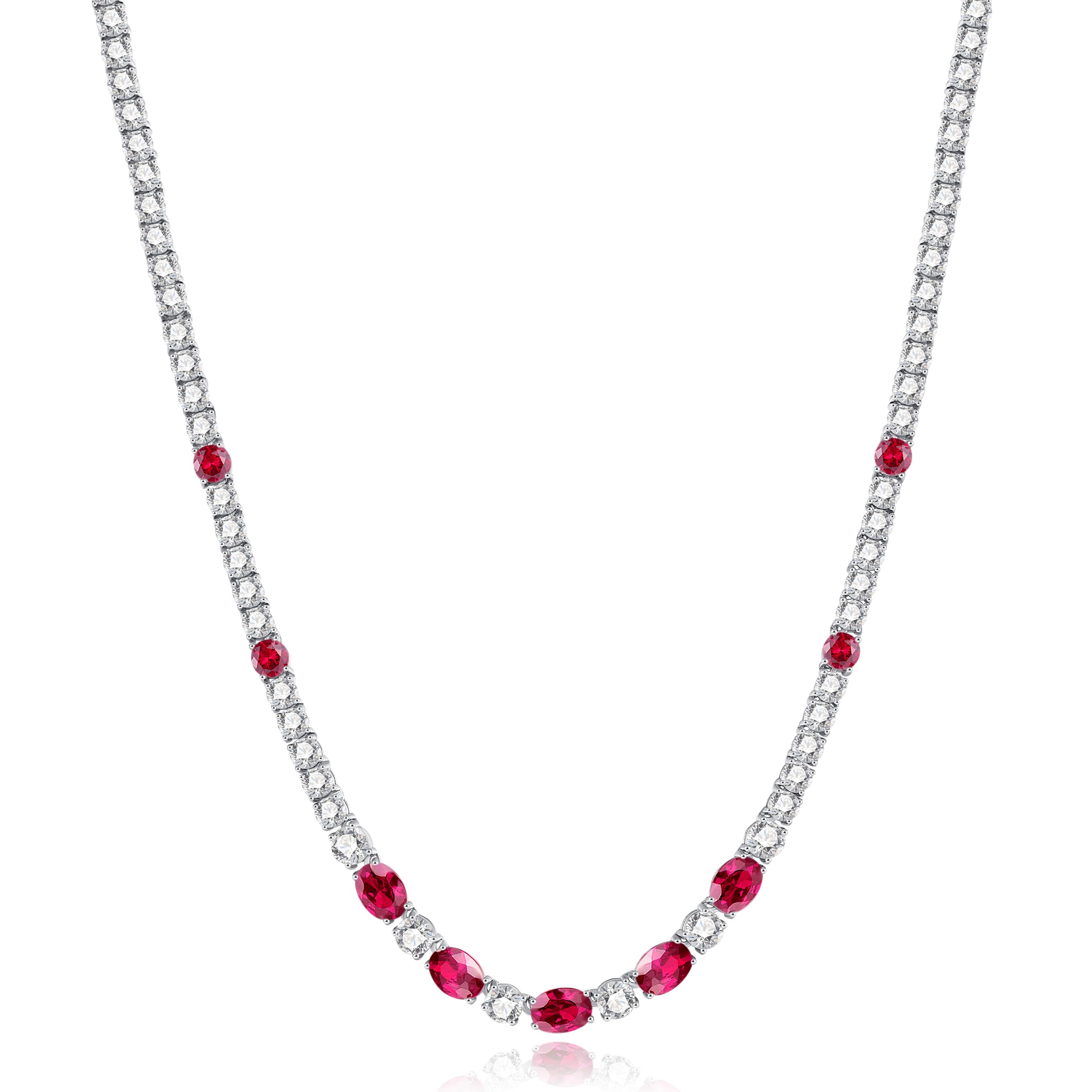 ❴♥Classic Luxury Tennis Necklace with Birthstone♥ ❵ This 18" tennis necklace features round 4mm Cubic Zirconia stones in four-prong settings, decorated with four 5mm round Created Ruby and five 6*8mm oval Created Ruby. Unique and Luxury. There are 12 different color's gemstones corresponding