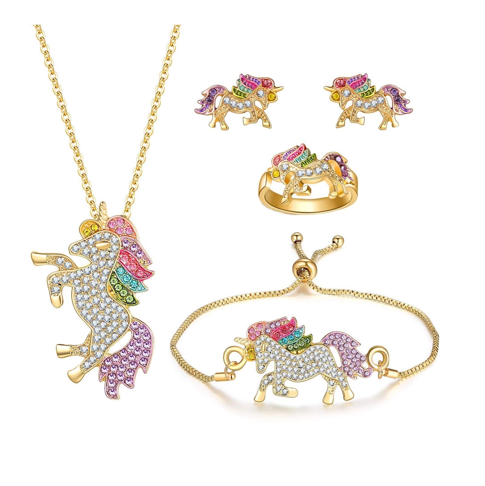 What better way to express the love in your life than with her very own unique unicorn necklace bracelet earrings ring jewelry set? Put a smile on her face at that sentimental moment. Show your love by this brilliant gold unicorn gifts as an amazing, cute, and memorable gifts for every special occas