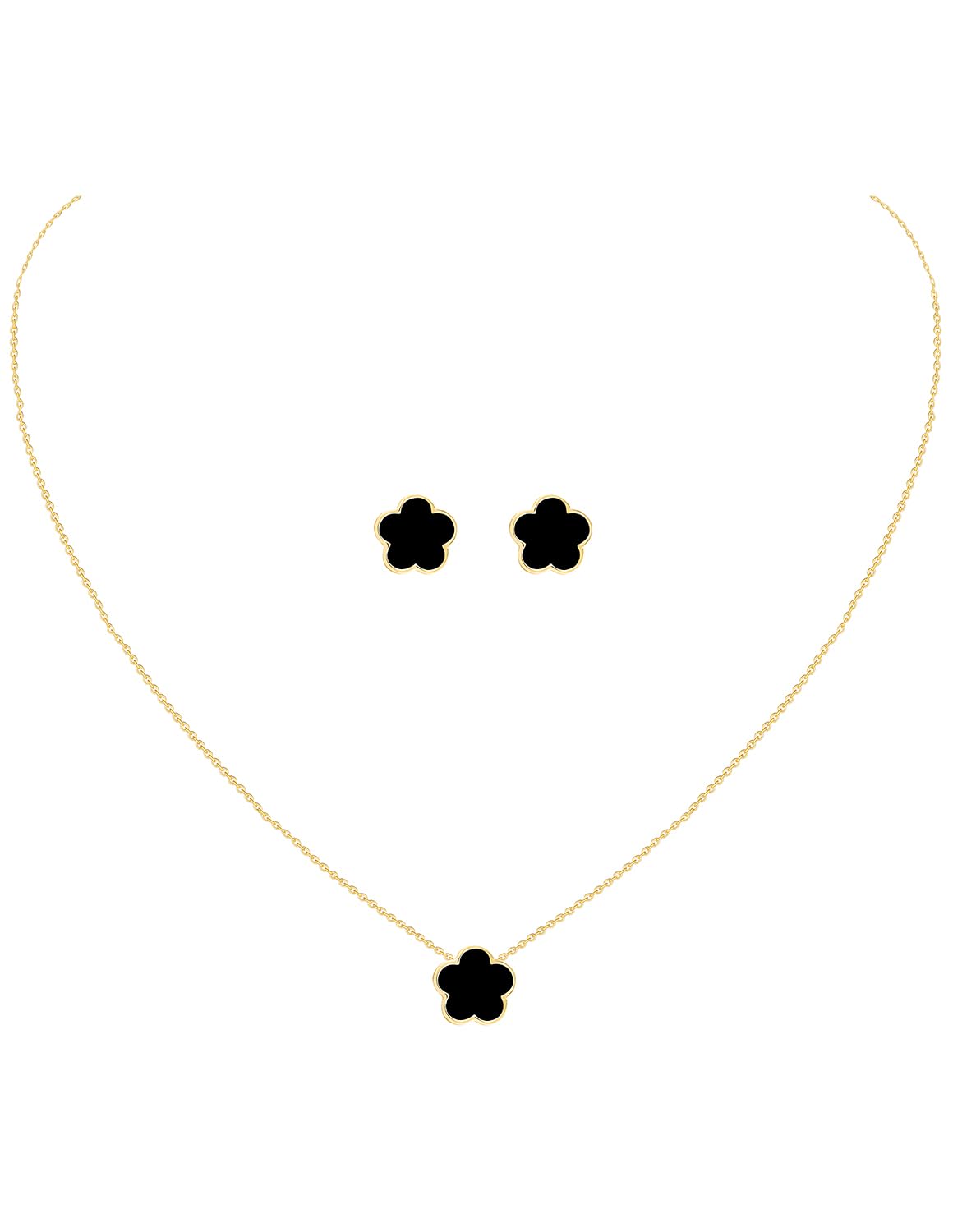 JIEMUCHU Gold Plated Stainless Steel Flower Necklace and Stud Jewelry Set for Women