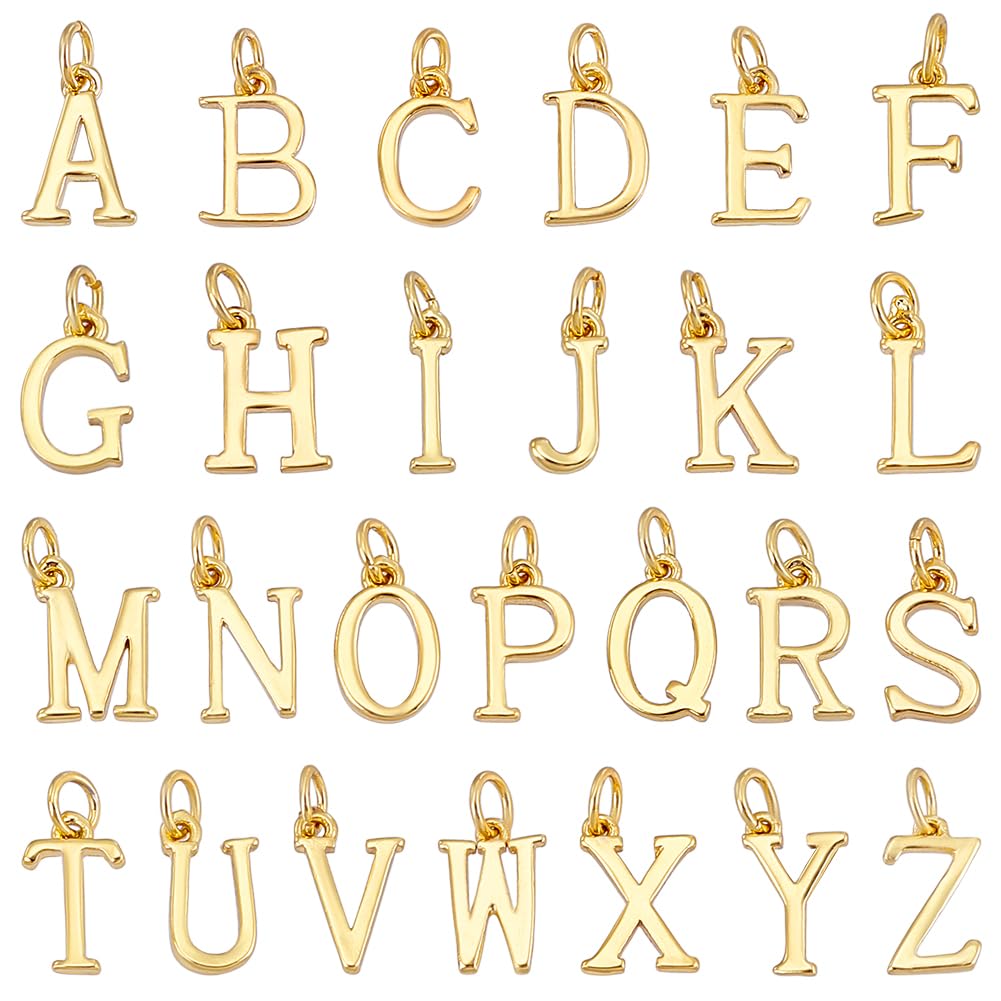 PH PandaHall 26pcs 14k Gold Plated Letter Charms A-Z Alphabet Letters Pendants, 10mm Initial Alphabet Pendant A-Z Alphabet Charms Pendant Beads for