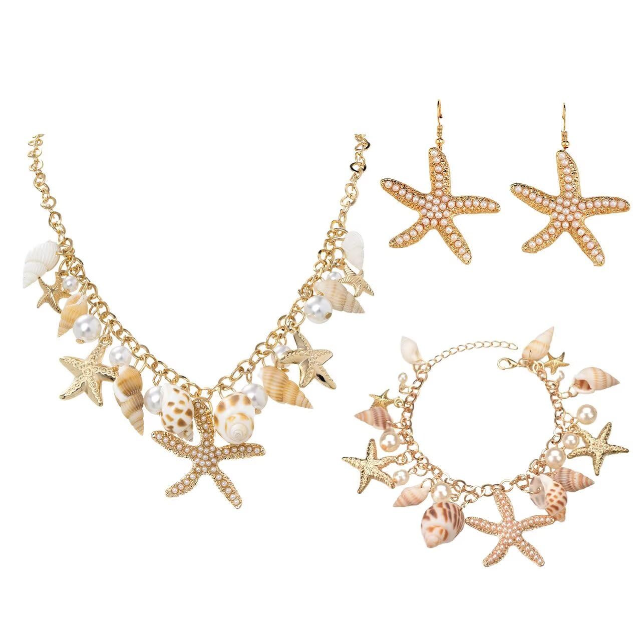 Material: These shell necklace bracelet earrings are made of alloy, resin beads and simulated pearl material, easy to wear and take off, comfortable to wear; The jewelry set is sturdy, can be stored and used for a long time; Size suitable for most women to wear Summer Beach Jewelry Set: You will rec