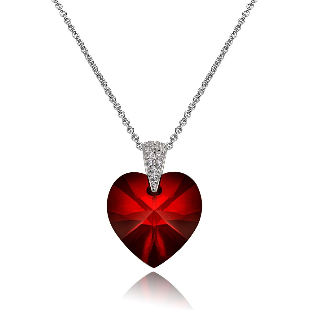 Heart Necklace - This stunning necklace for womenfeatures a heart pendant created with European crystals in a gorgeous red color, a must-have for any jewelry collection. Red Crystak Necklace for Women - The bale is encrusted with round cubic zirconia stones, so you can dazzle from miles away. This b