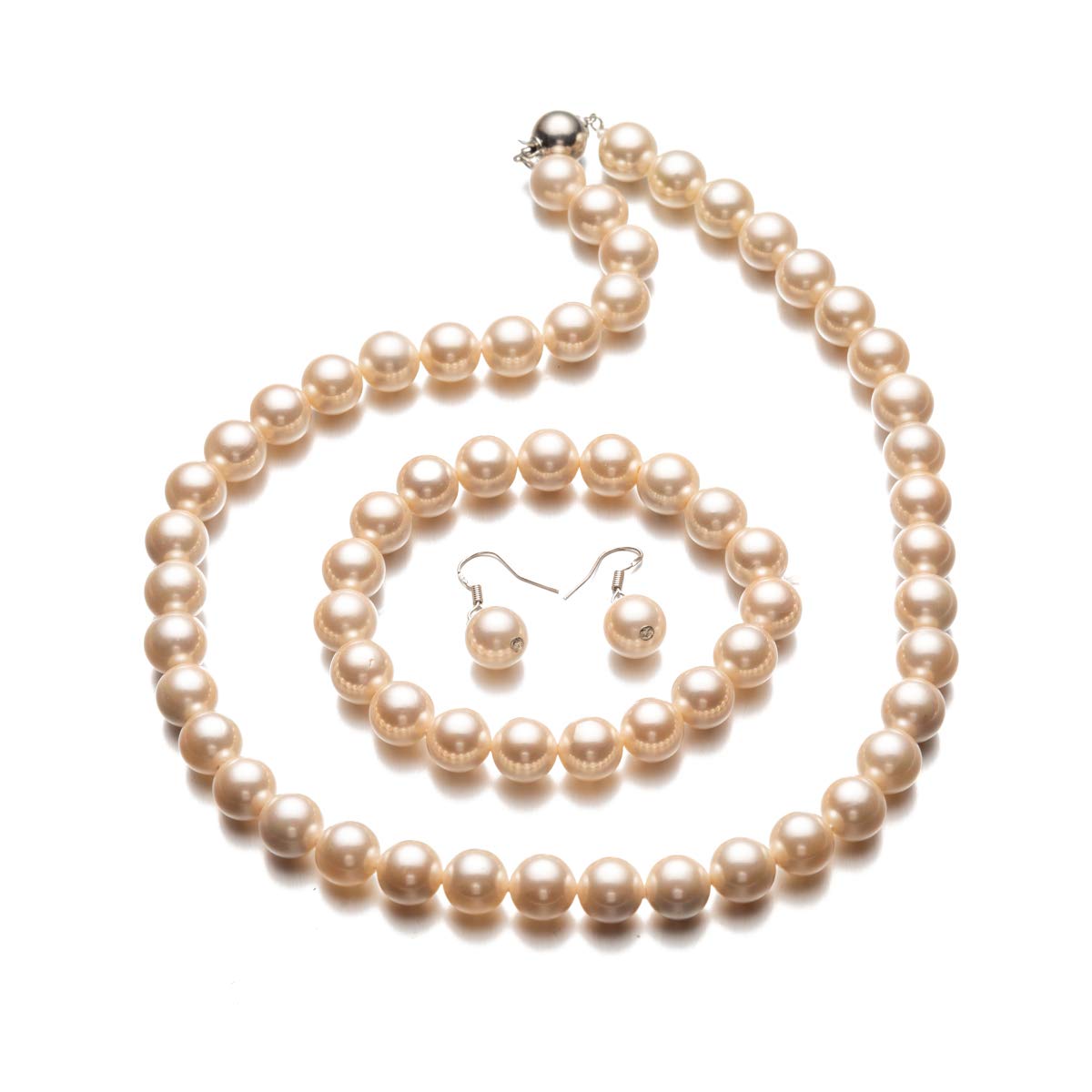 Size: Necklace Length 17.3inchs(44cm), Bracelet Inner Dia. 2.1inches(5.3cm), Earrings Dia. 10mm Material: Zinc Alloy+Shell Pearls Quantity: 1 piece necklace+1 piece bracelet+1 pair earrings Different colors: Red, Grey, Black, Orange, Pink, Purple, White, Stylish and Great for Everyday Wear A lovely