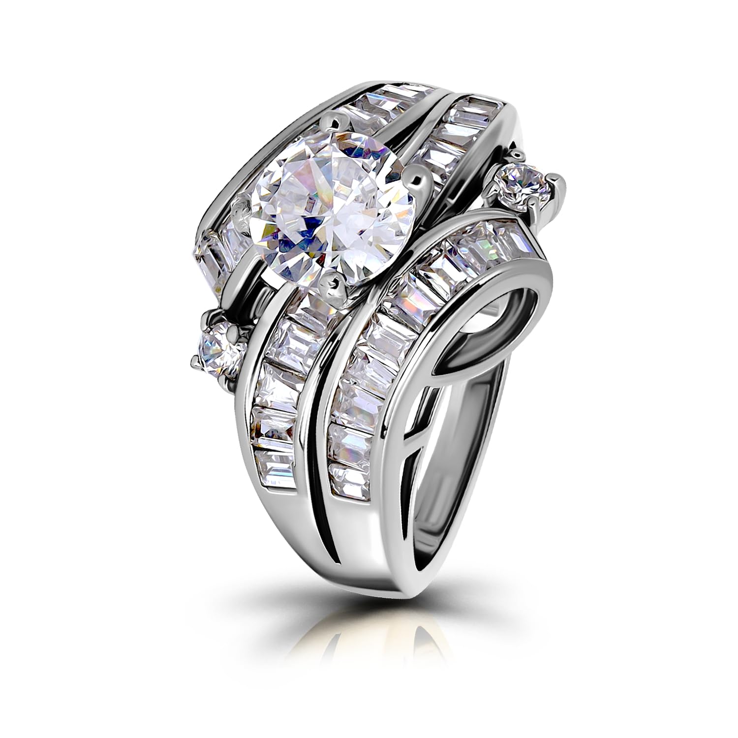 STUNNING BRILLIANCE — This exquisite ring is designed to make a bold fashion statement and elevate your style to new heights. The channel-set design features three rows of sparkling stones, meticulously placed to create a stunning visual impact. The cubic zirconia stones mimic the brilliance of di