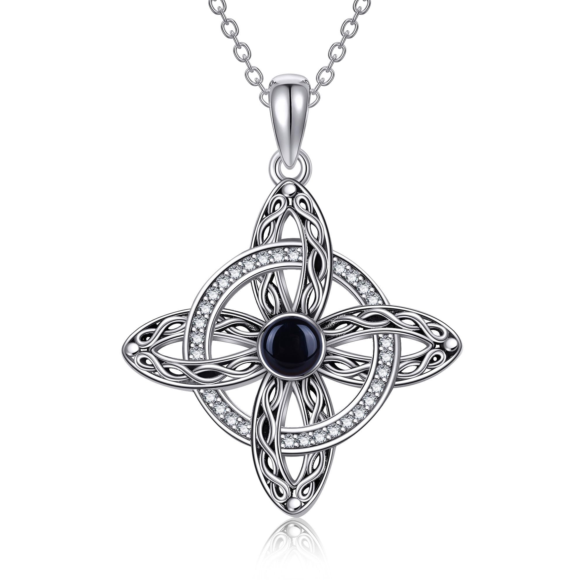 【Design】 This witches knot necklace features an intricate Witches Knot pendant with a central black onyx stone, blending mystical symbolism (protection, intuition) with timeless style. A standout in witches knot jewelry and spiritual accessory categories, it also resonates as a meaningful nudo d
