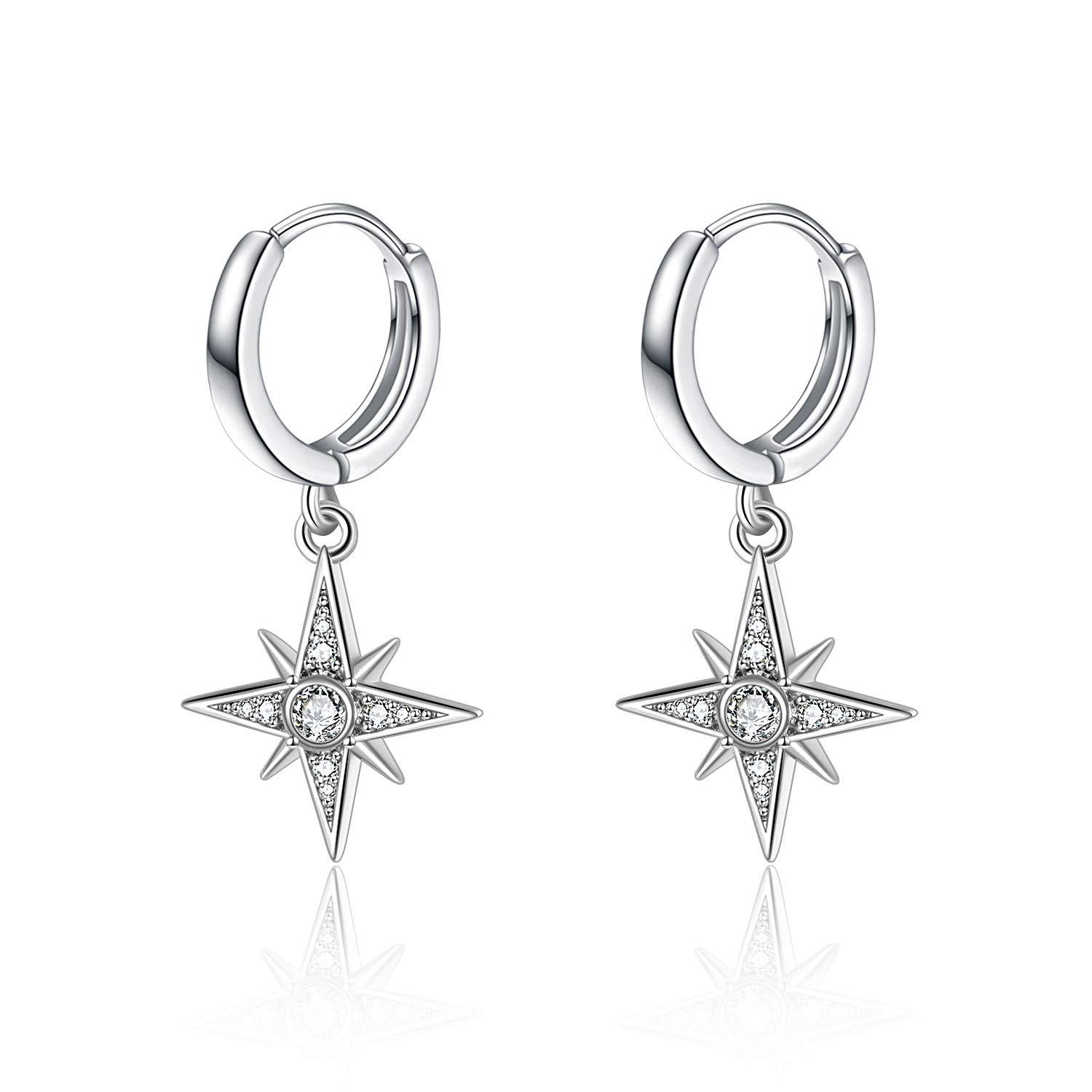 ❤DESIGN DEAL❤ -- Symbolism of The Polaris: Love and Success. It can inspire people ❤Material❤ -- 925 Sterling Silver, Nickel-free, Lead-free, Cadmium-free and Hypoallergenic, Especially for those with sensitive skin ❤SIZE❤ -- Earring Size:27mm*12.8mm (1.06IN*0.50IN), Hoop Diameter :13mm,