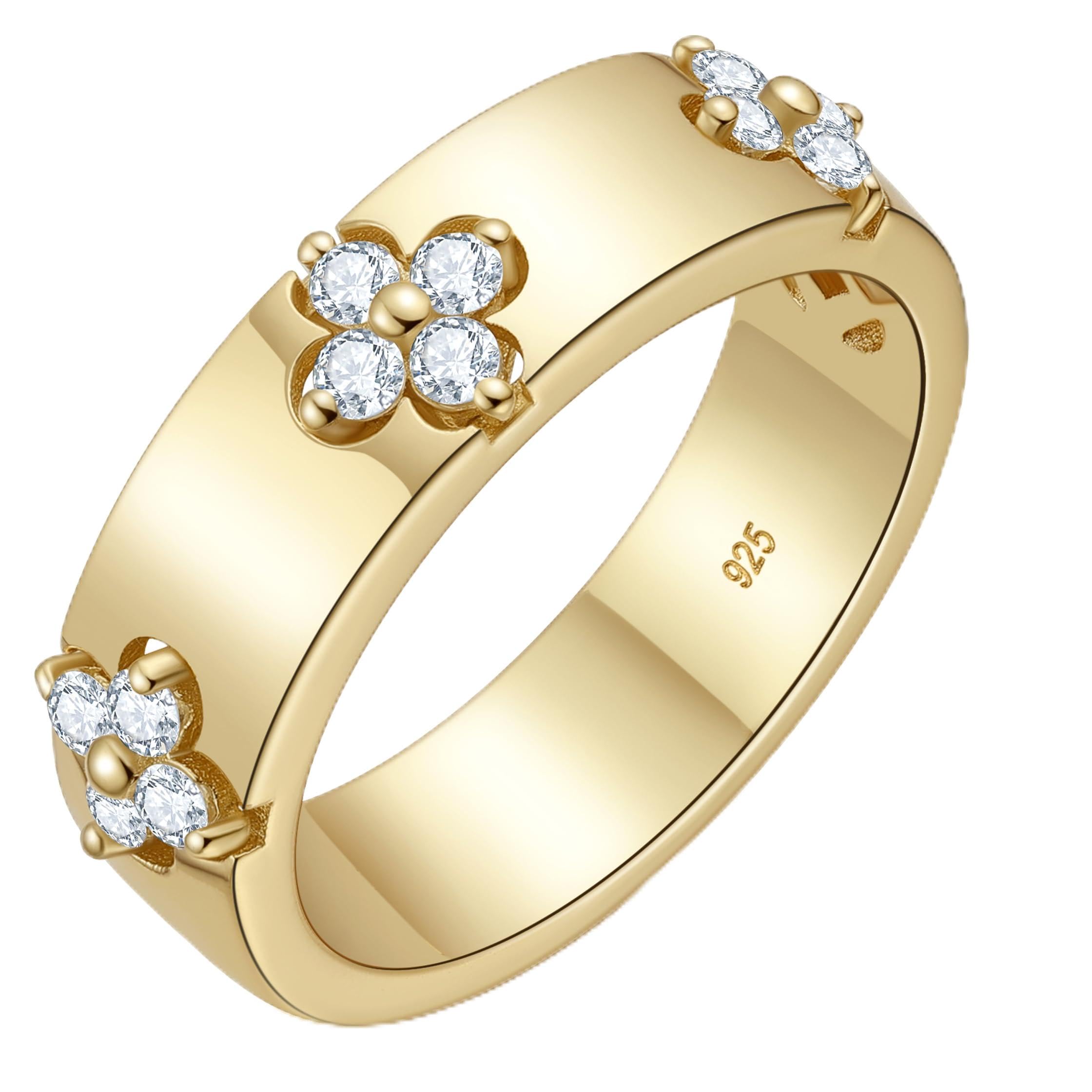 TIMELESSTAR Premium Clover Rings for Lucky Women with Lab-Grown Moissanite|Lab-Grown Emerald|14K Gold Plated Non Tarnish