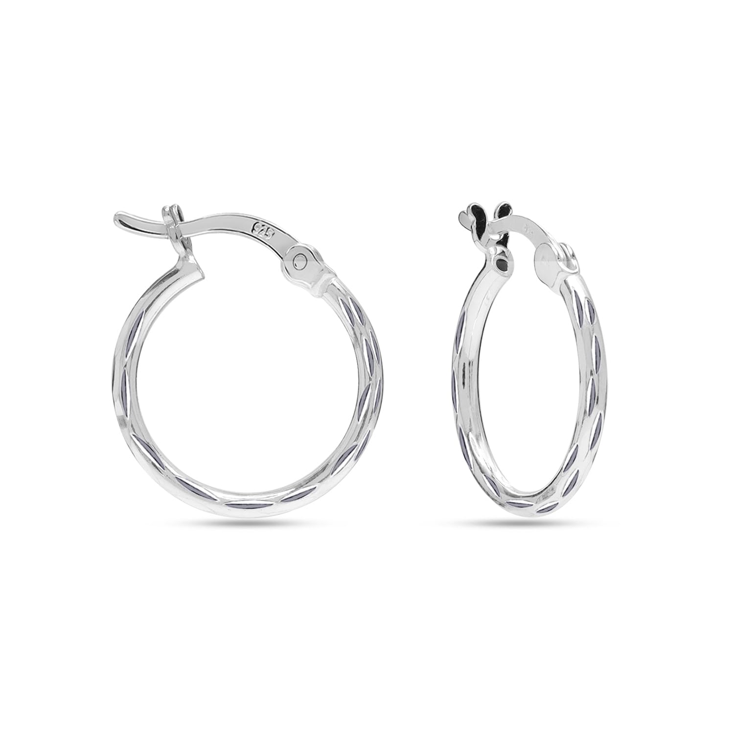 LeCalla 925 Sterling Silver Hoop Earrings for Women | Lightweight Classic Diamond-Cut Textured Hoop Earring | Women's Earring Hoops Size 20/25/30/35/