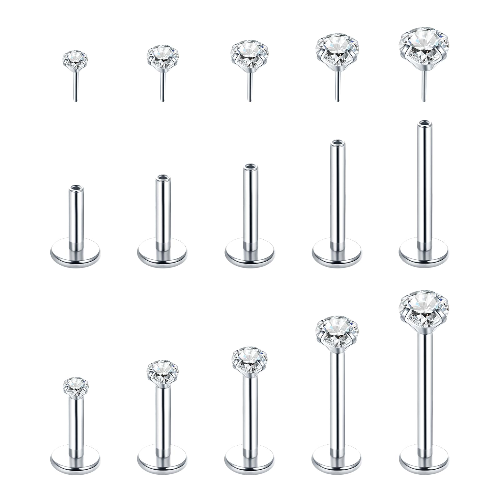 Labret Jewelry: Total 5 Pairs. Includes 5 different size of bar and top jewelry(each size has 2PCS). You can freely make matches. Perfect for finding the right size jewelry your piercing needs Material: Labret jewelry 16g are made of stainless steel, nickel and lead free, suitable for sensitive skin