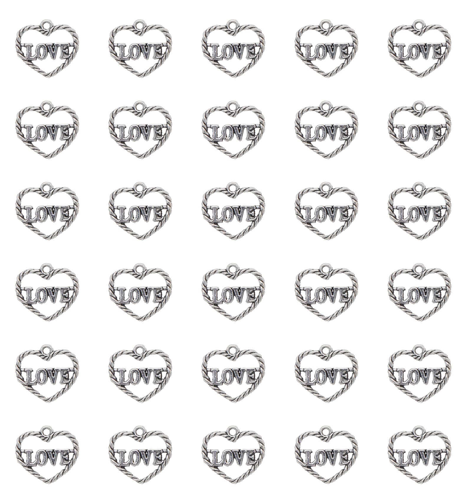 Ruwado 50 Pcs LOVE with Heart Shape Charms 1.5 x 1.4 cm Metal Vintage Cute Pendants for DIY Jewelry Making Women Handmade Jewelry Necklace Bracelets