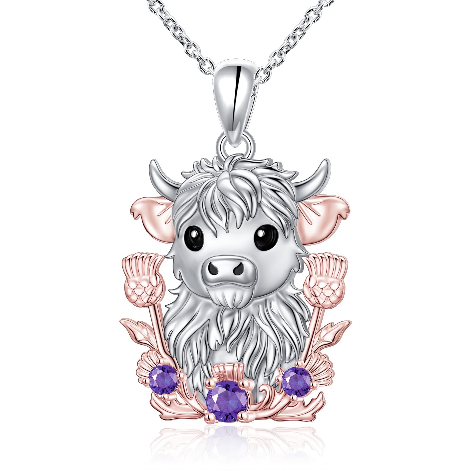 DAOCHONG Highland Cow Necklace 925 Sterling Silver Scottish Cow Pendant Cute Highland Cow Scotland Jewelry Gifts for Women