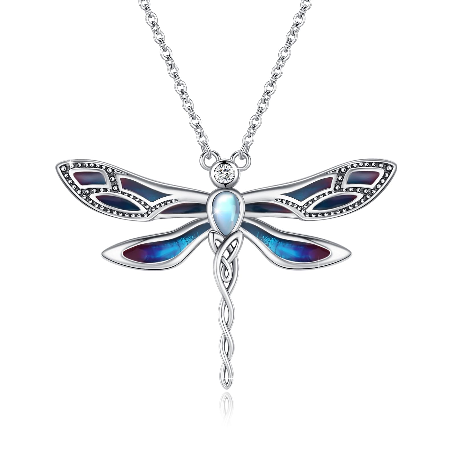 CUOKA MIRACLE Dragonfly Necklace 925 Sterling Silver Dragonfly Necklace with Moonstone Blue Oil Drop Dragonflies Pendant Jewelry Christmas Birthday
