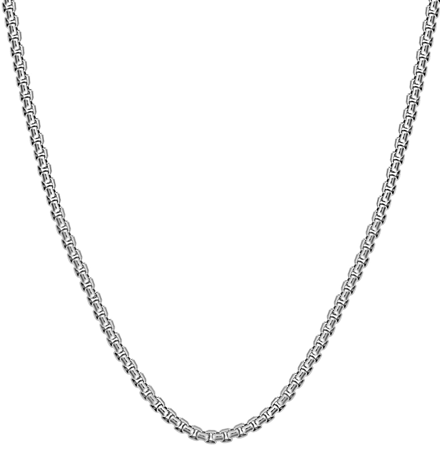 Savlano 925 Sterling Silver Italian Solid Round Box Rhodium Plated Chain Necklace Comes With Gift Box for Women & Men - Made in Italy
