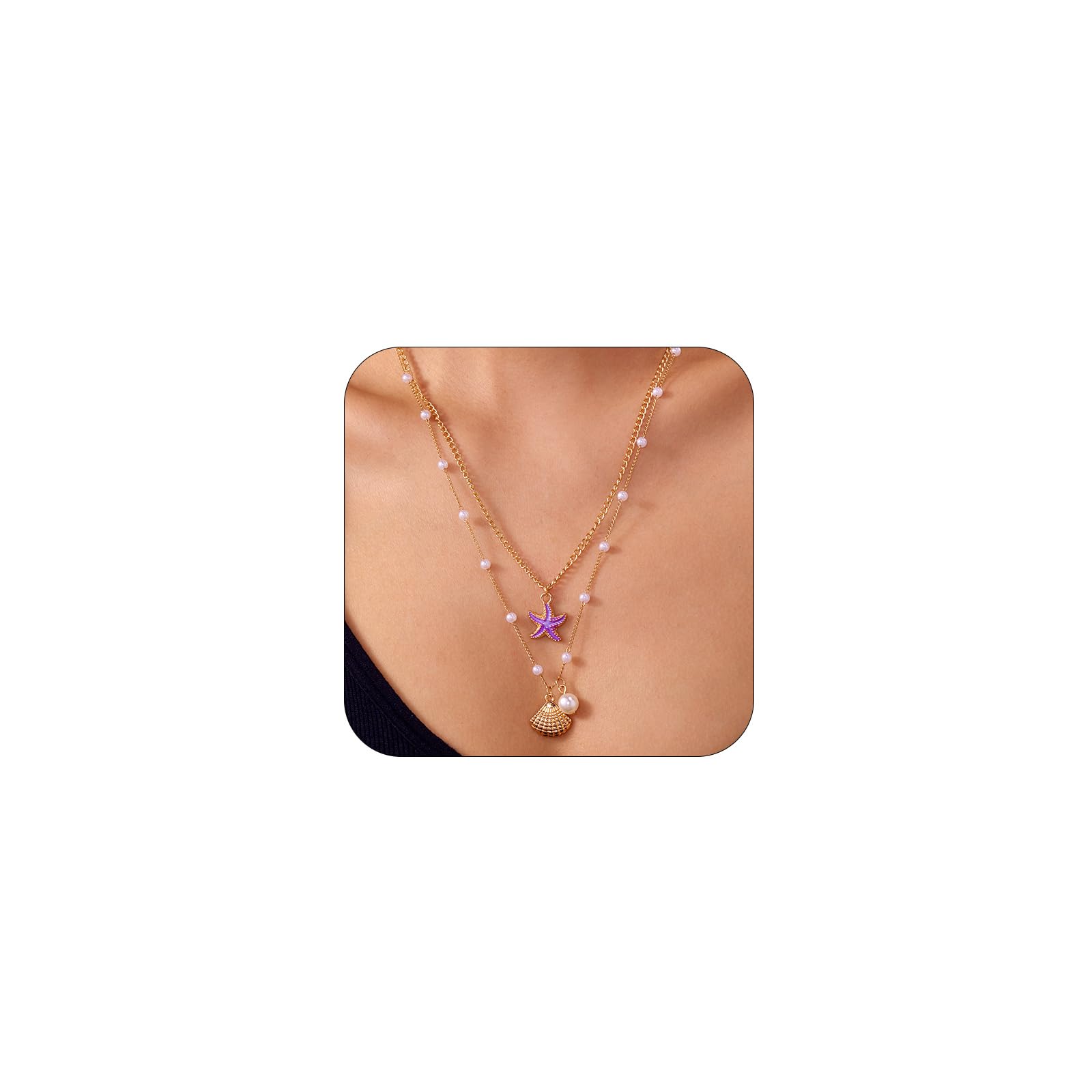 Boho Beach Starfish Necklace: Slip into this stunning 2-piece set and instantly capture that laid-back, coastal look. The dainty gold starfish and seashell charms paired with glowing pearls create a layered jewelry Comfy Size and Weight: Feel the difference with our feather-light chains that move wi