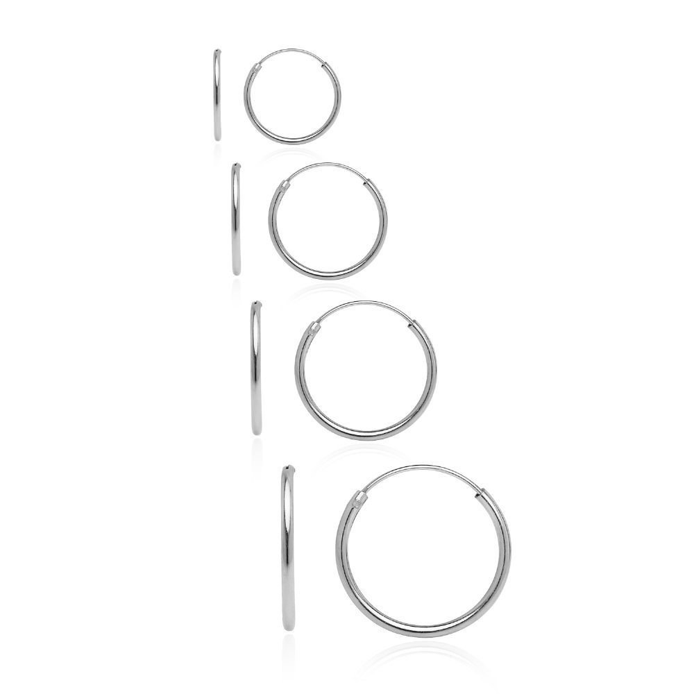 ENDLESS HOOPS - 4 PAIR SET – These attractive earrings showcase four pair of polished sterling silver endless hoops. Hoops measure 1.2mm in width, 10mm 12mm 14mm and 16mm in length. Available in Silver, Yellow Gold & Rose Gold Flashed Sterling Silver. SOLID 925 STERLING SILVER – Hoops & Loops ea