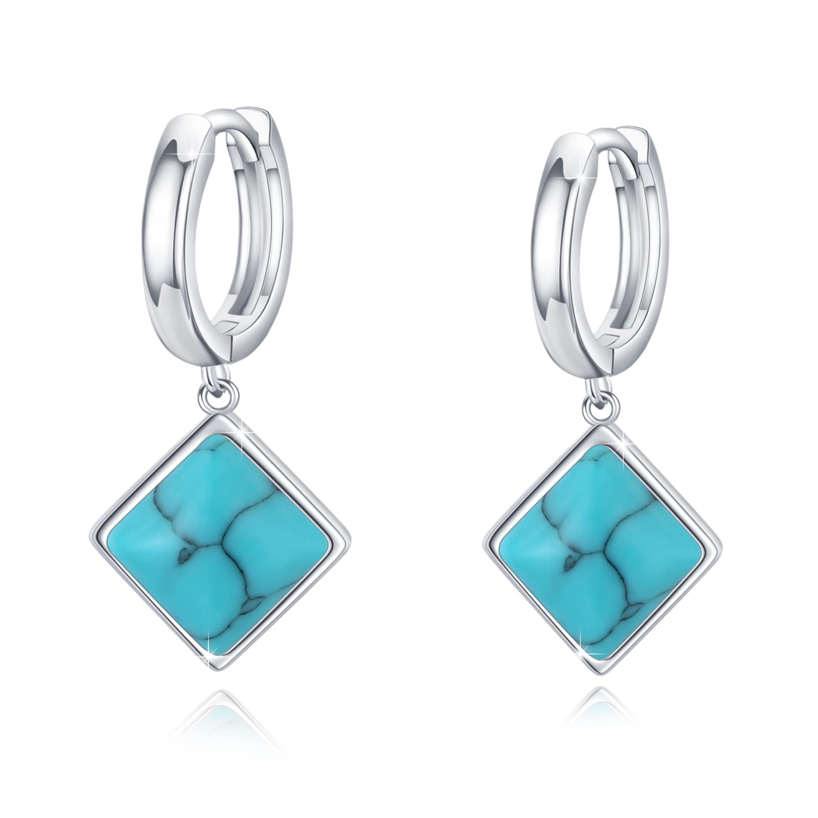 Turquoise Dangle Earrings, Rectangle Turquoise Leverback Earrings S925 Sterling Silver Gemstone Earrings Jewelry for Women