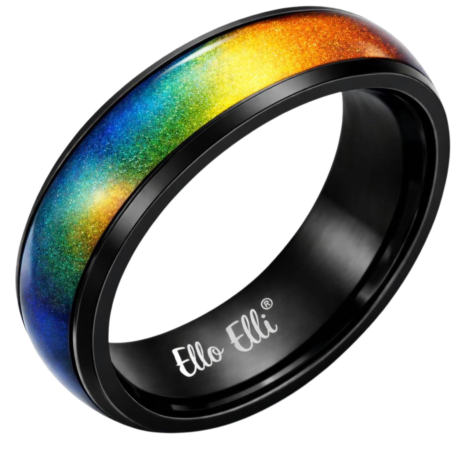 Ello Elli Mood Ring, 6mm Stainless Steel Comfort Fit Band, Color Changing Ring for Men and Women, Multi Color