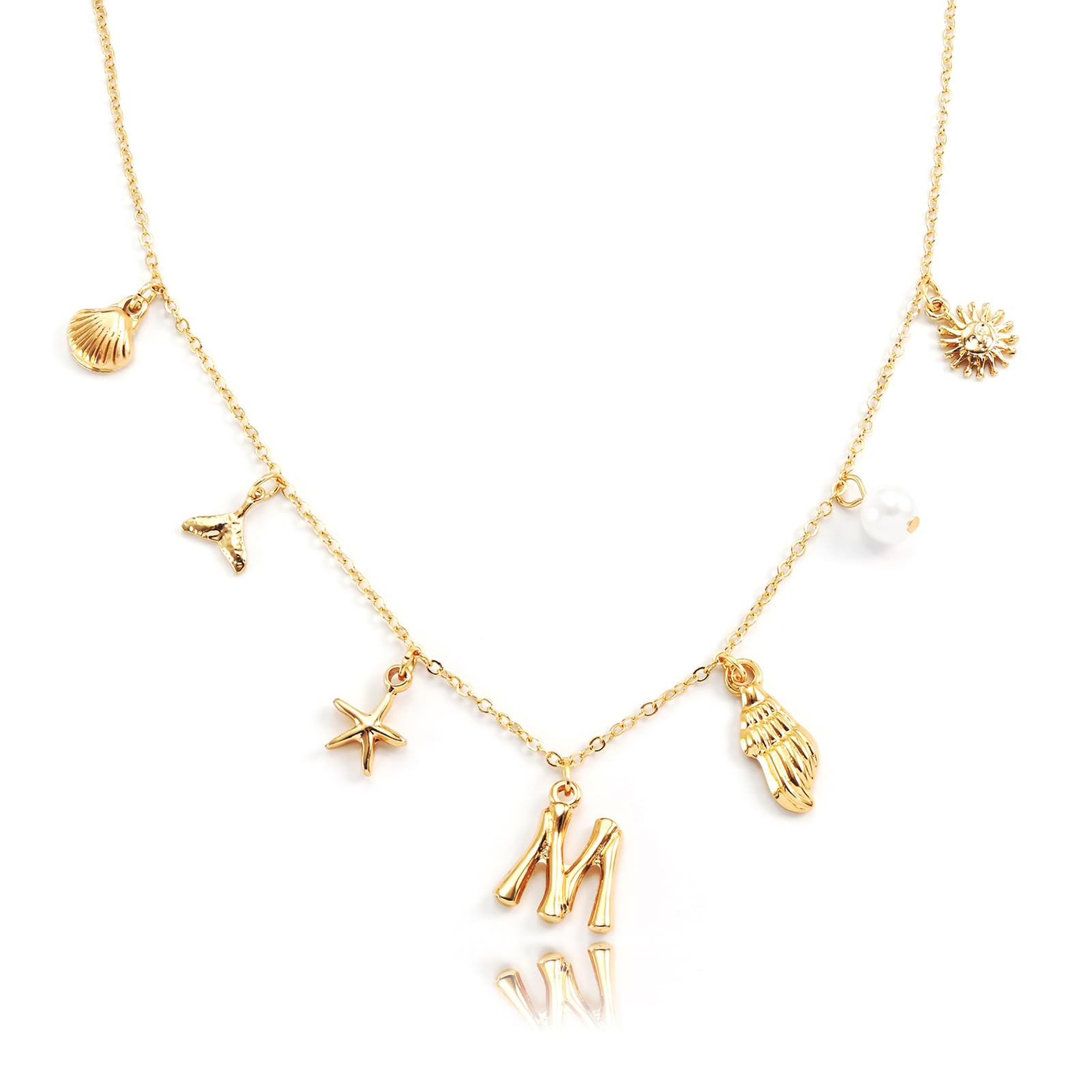 Personalized Style: Make your outfit truly unique with our initial necklace gold. This charm necklace for women features a gold letter pendant and ocean-inspired elements like seashell and starfish, perfect for adding a personal touch to your ocean jewelry collection Adjustable Fit: Our shell neckla