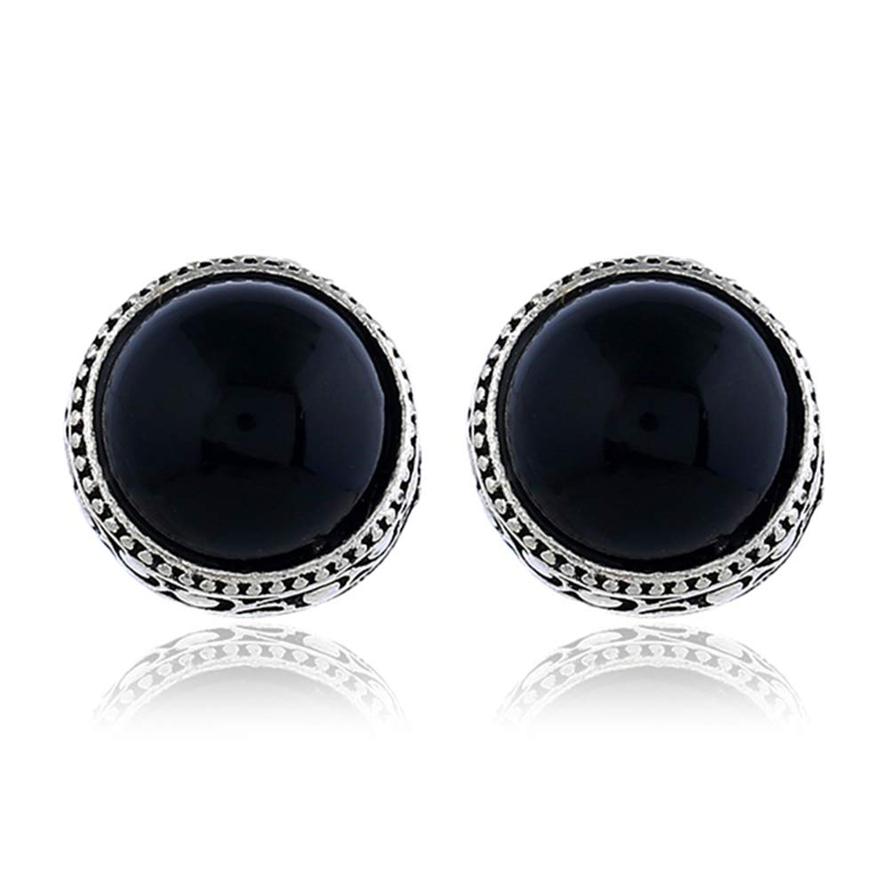 JustMoMoMin Vintage Silver Tone Gothic Carved Pearl Ear Clips For Men Women