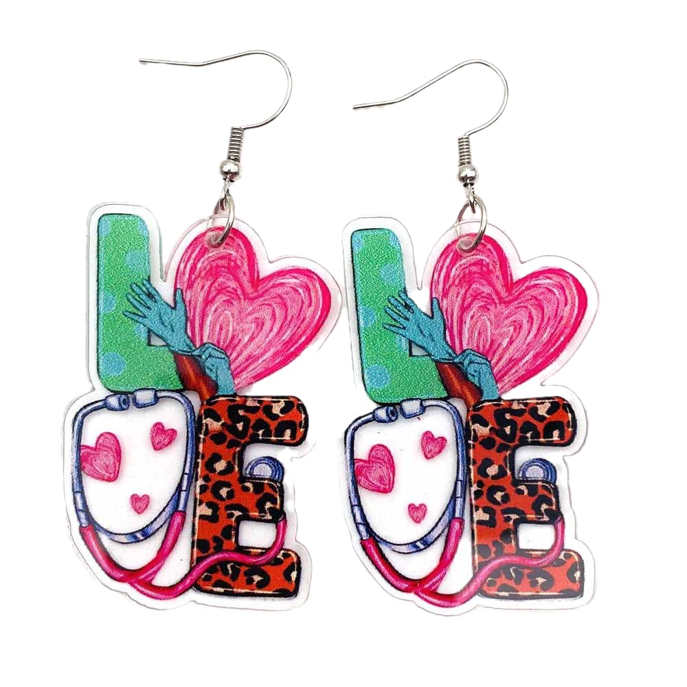 New Love Heart Acrylic Earrings NURSE Doctor Stethoscope Syringe Dangle Earrings for Women Nurse's Day Gift Jewelry
