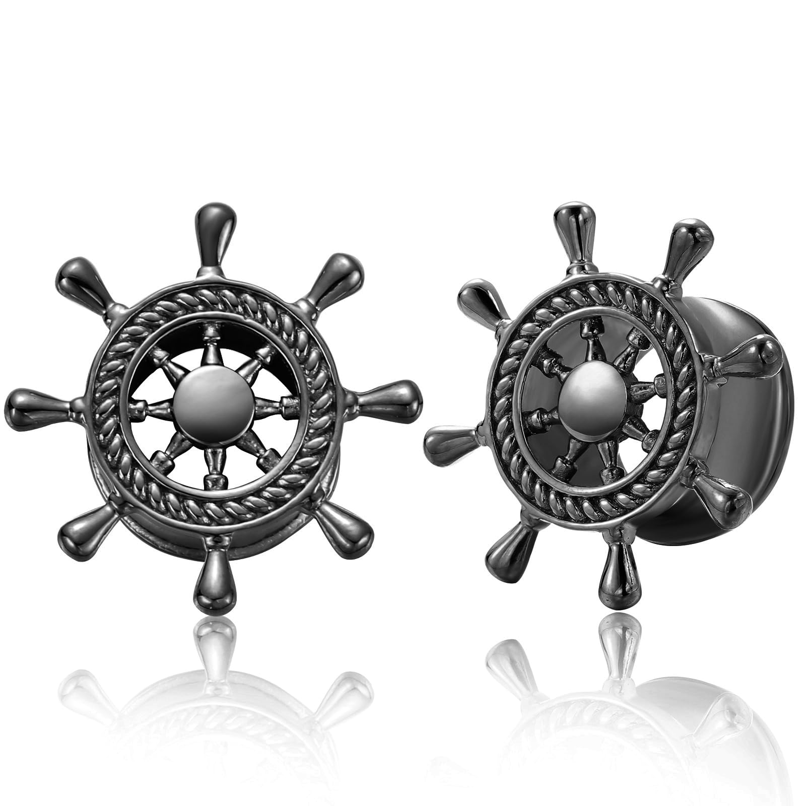 DEWGEM 2PCS Hypoallergenic Ear Gauges 316 Stainless Steel Rudder Ear Plugs Tunnels Earring Expander Stretcher Piercing Body Jewelry for Women and Men