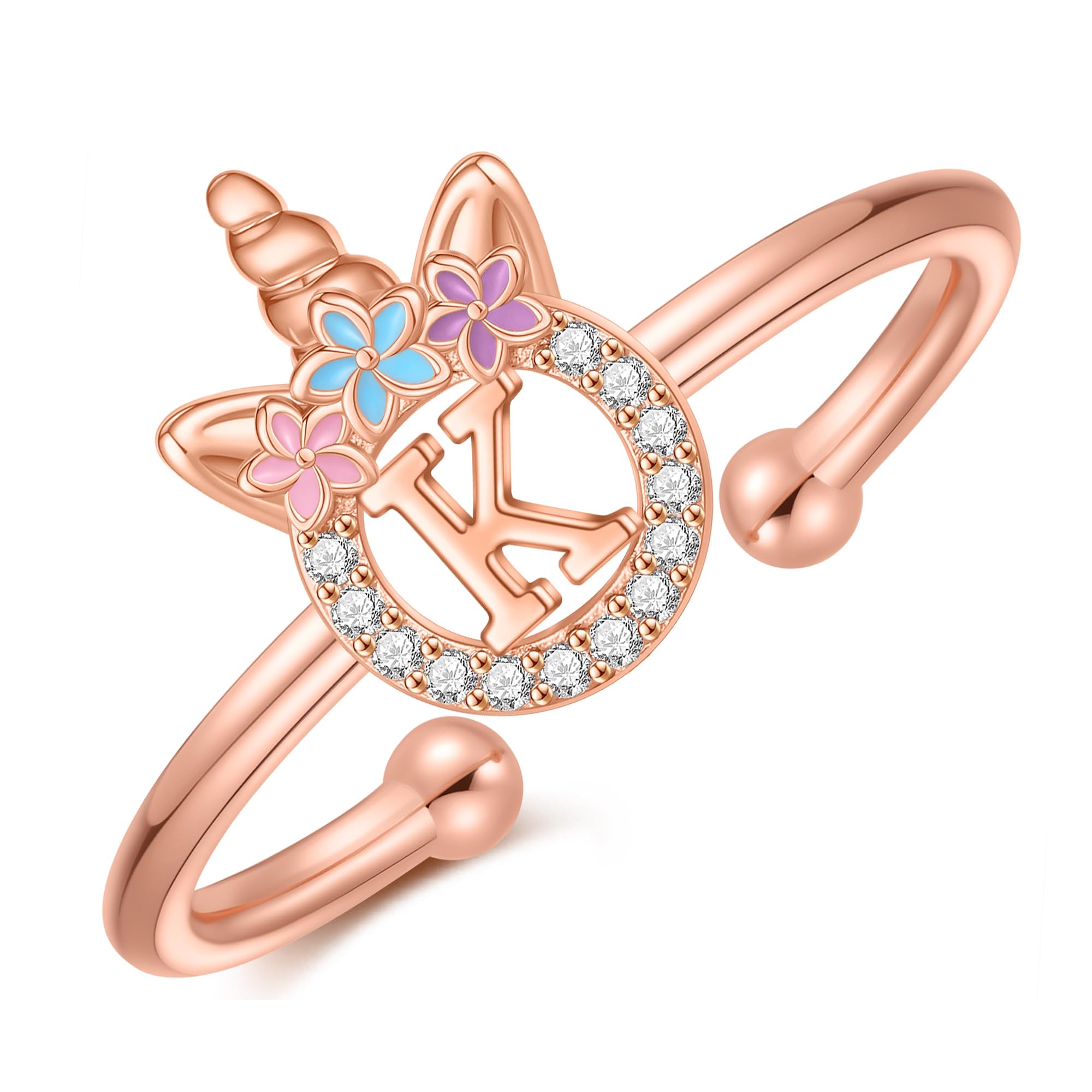 【Initial Rings for Teen Girls】 Unicorn Initial Ring, the sparkling zirconia on the ring attracts the girl's eyes. Wear this initial ring for girls and feel the love and happiness, good luck will follow you, may this letter rings for girls make your girl's wishes and dreams come true! 【Material