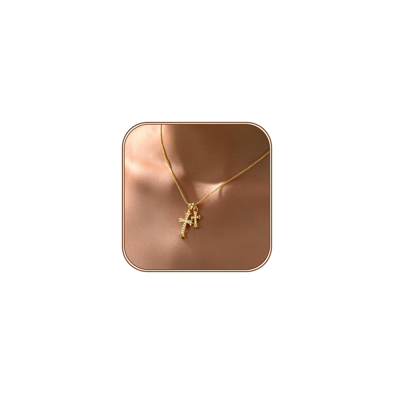 ❤ Cross Necklace for Women: This exquisite cross necklace showcases fashion and personality, consisting of a unique circular box chain and two gold cross pendants of different sizes, embedded with high-quality cubic zirconia. ❤ Material: Our cross necklaces are made of 14K real gold-plated brass