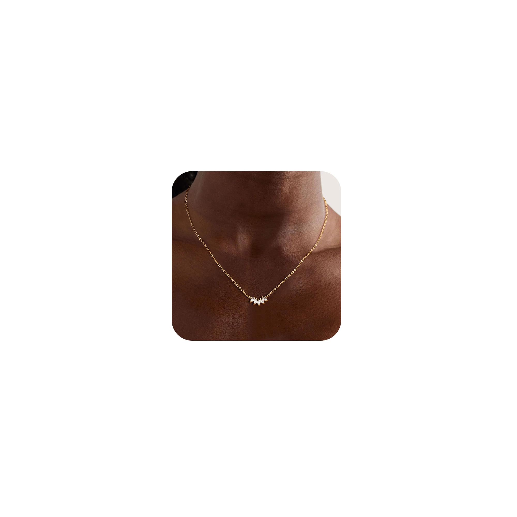 Bouzilli CZ Diamond Pendant Gold Necklace for Women Dainty 14k Gold Plated Choker Necklaces Simple Gold Jewelry Gifts for Women