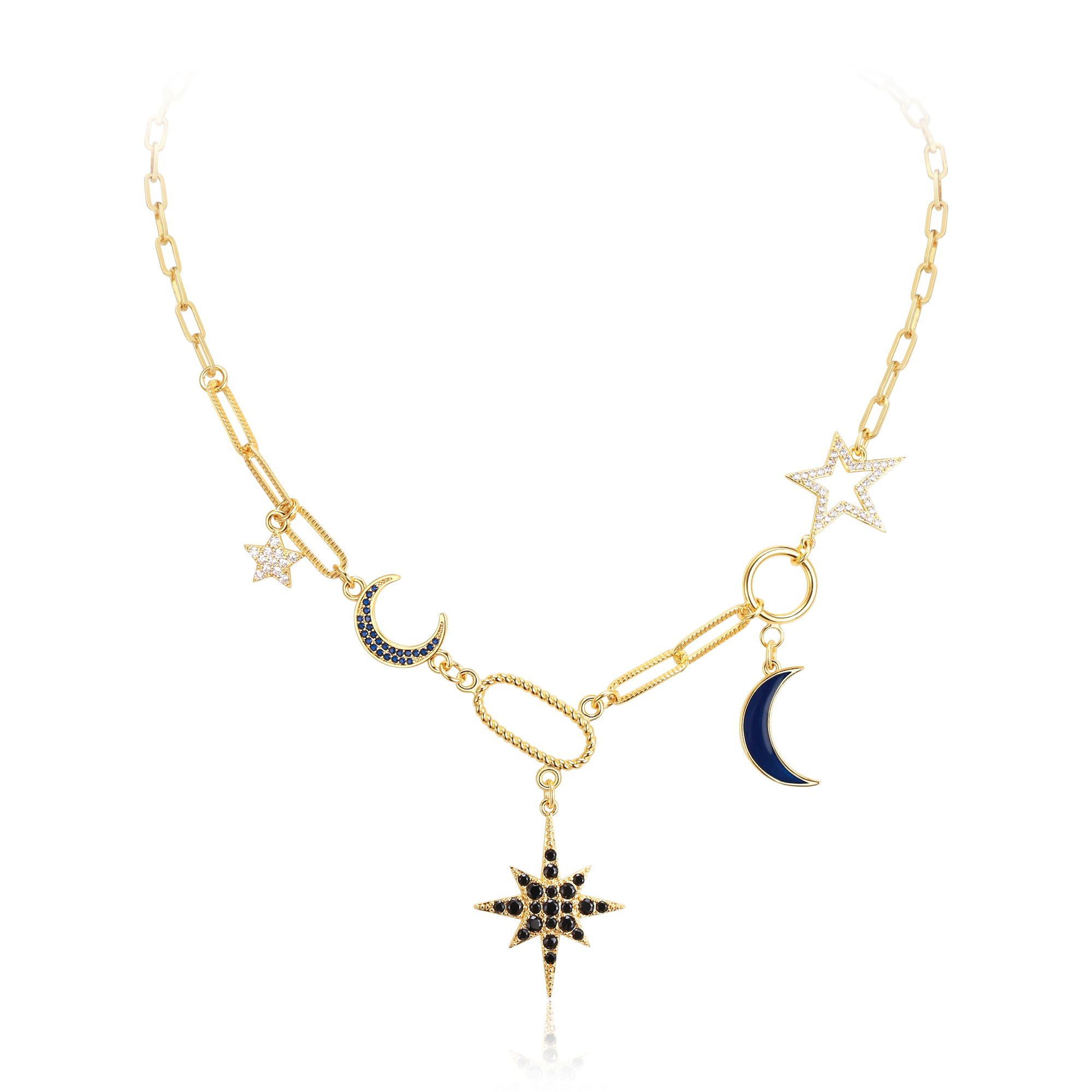 Charm Moon Star Pendant NecklaceFANZE charm necklace for women has an unique moon and star pendants paperclip chain on DESIGN:, symbolizing friendship, luck and good wishes. This trendy lucky pendant necklace is a timeless addition to any jewelry collection, perfect for yourself or as a GIFT: for