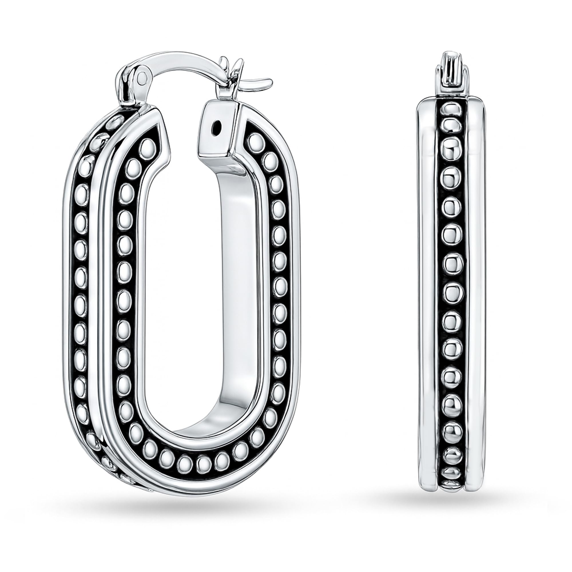 LeCalla 925 Sterling Silver Bali-Style Hoop Earrings Lightweight Click-Top Antique Two-Tone Beaded Italian Bali Style Earring Hoops for Women