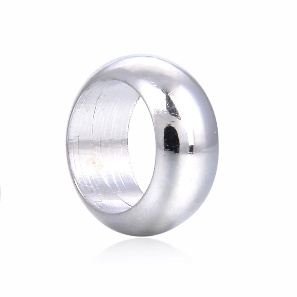 20pcs Ring Rondelle Loose Beads 9mm (0.35 Inch) Sterling Silver Plated Brass Metal Spacer (Large Hole 5mm) for DIY Craft Jewelry Making CF107-S