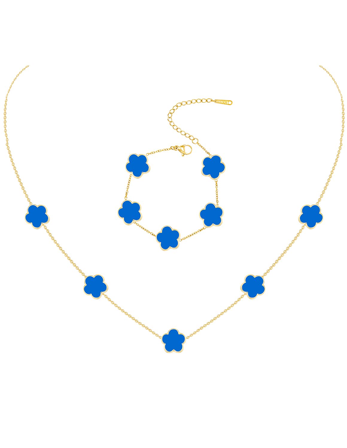 JIEMUCHU Gold Plated Stainless Steel Flower Bracelet and Necklace Jewelry Set for Women