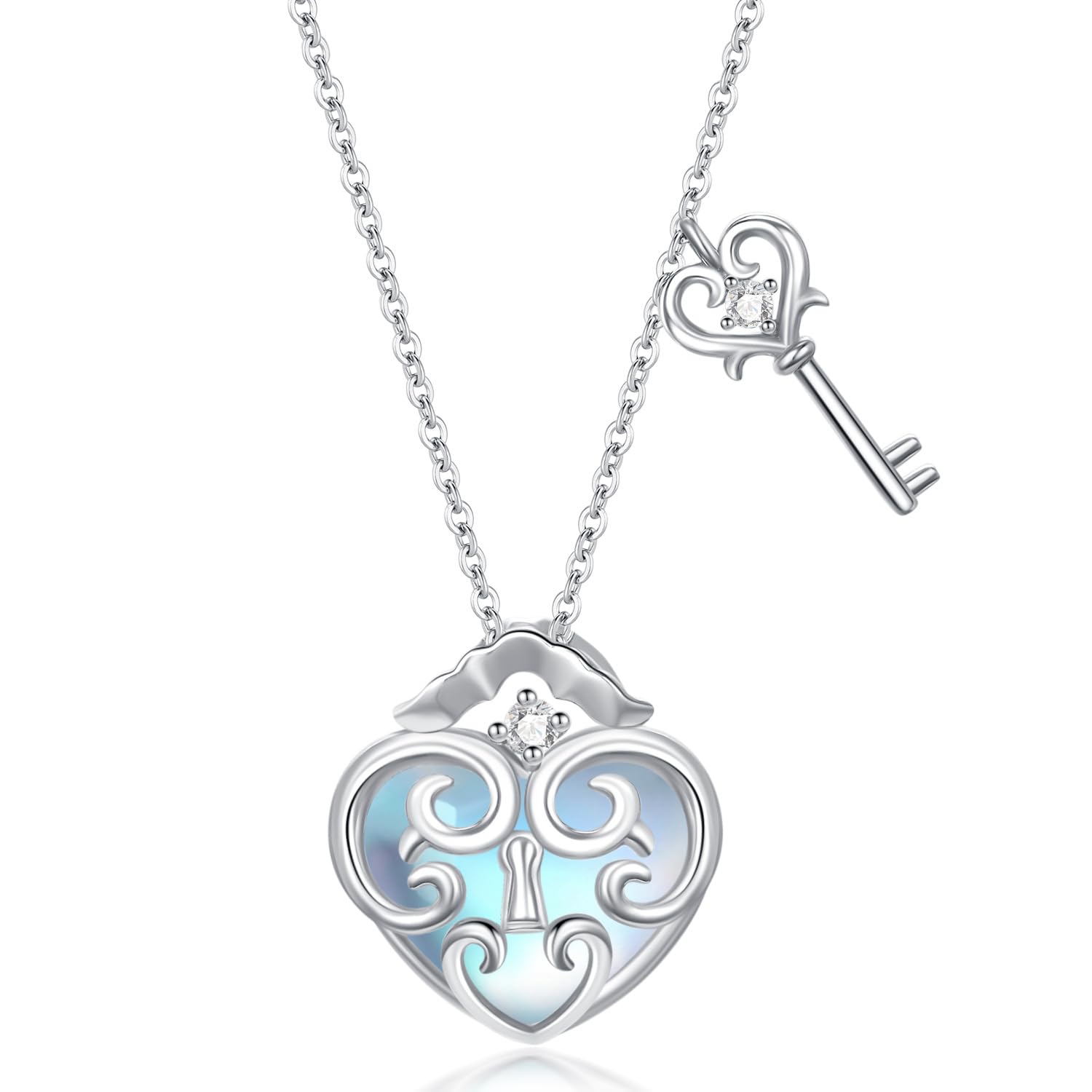 Design: This Padlock Necklace is made from high-quality 925 sterling silver and features a key lock pendant with a beautiful moonstone gemstone. It is a unique and stylish piece of jewelry that is perfect for both men and women. Size: 0.65*0.74 Inch, the length of silver chain: 18+2 inch. Material: