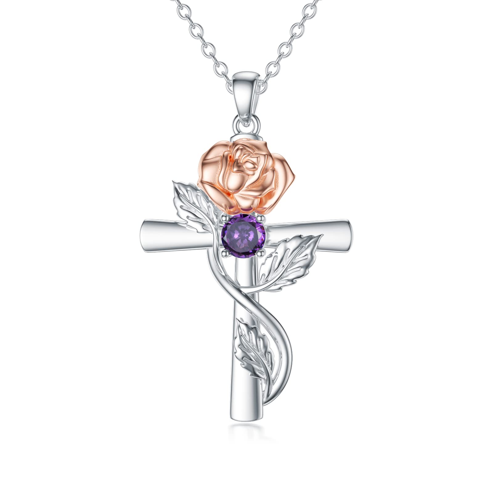【Cross Birthstone Necklace】 The cross pendant are a symbol of all the hopes and wishes you wish to be, fulfill and create in your life. 【June Birth Flower Necklace】 Rose flower necklace symbolizes hope and beauty. The white snow lotus represents "pure love". Cross flower pendant size: 0.87*1