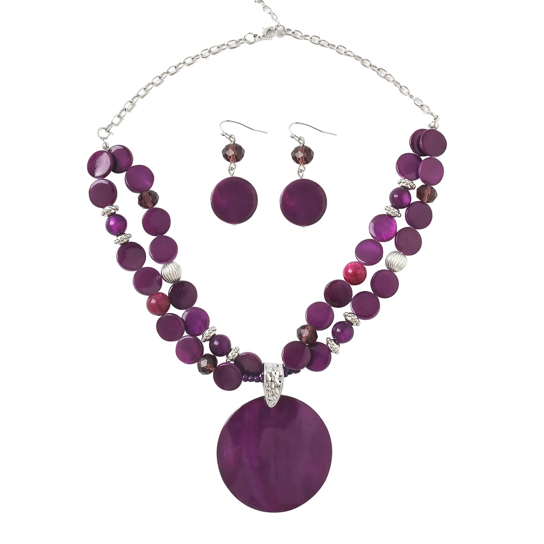 Xalroco Layered Beads Statement Fashion Necklace Chunky Jewelry Set Big Colorful Glass Stone Circle Shell Pendant Choker Necklace and Earring Set for