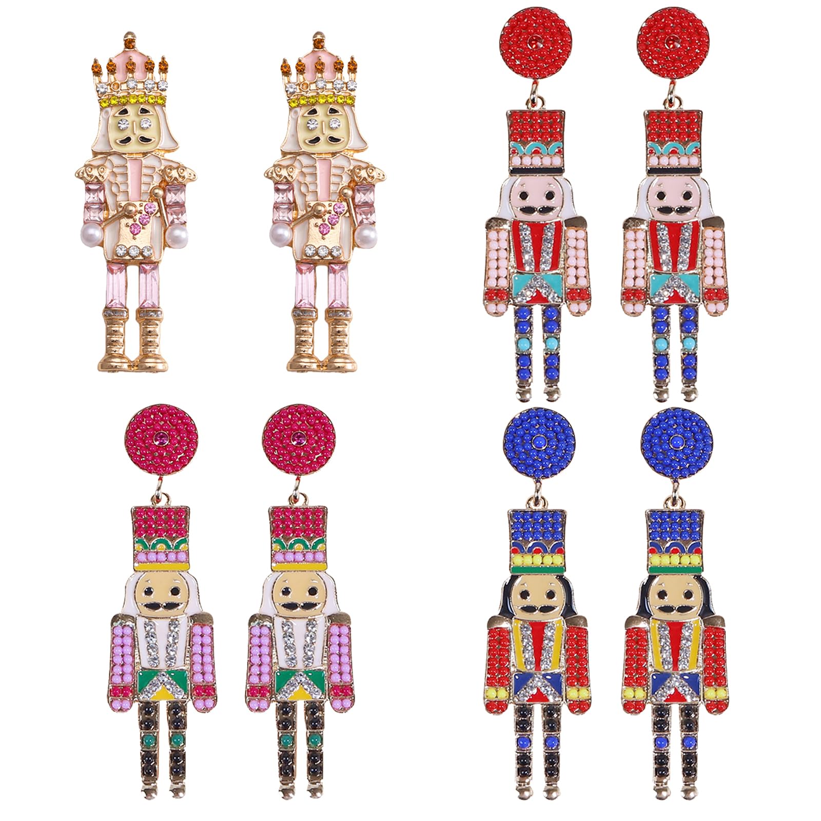 Nutcracker Earrings Set:Celebrate the holiday season with this enchanting set of 4 pairs of Nutcracker earrings. Designed with intricate Nutcracker figures, these earrings are perfect for women who love to add a touch of festive charm to their holiday outfits. Ideal for holiday parties, family gathe