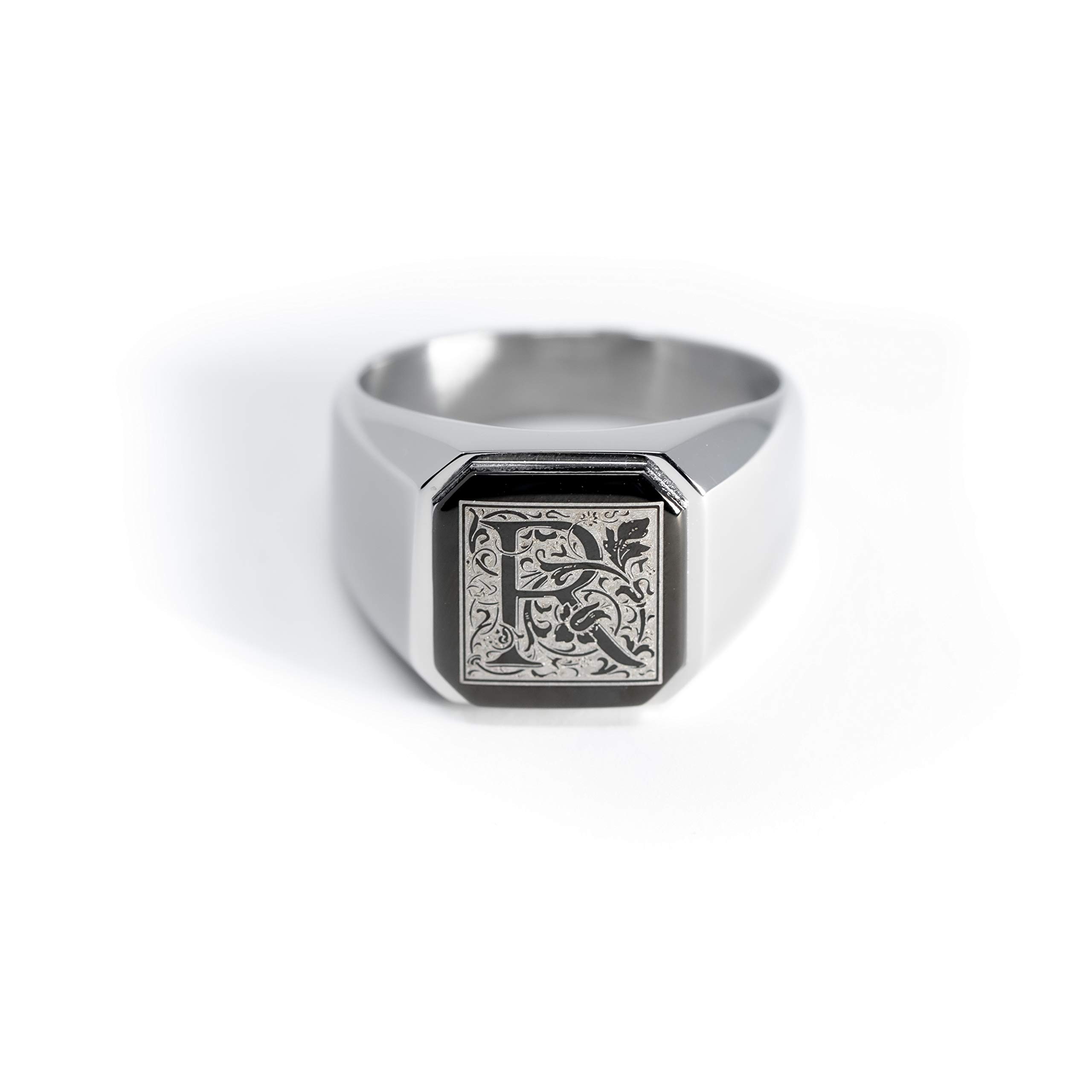 MENS RINGS: A unique and stylish piece of Mens Jewelry, our Stainless Steel Initial Ring is perfect for anyone who loves to make a statement with their accessories | Whether you're buying it for yourself or as a gift for someone special, our Stainless Steel Jewelry Rings for Men are sure to impress
