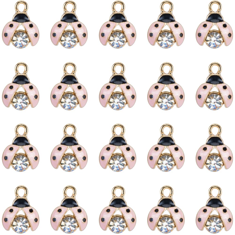 SUNNYCLUE 1 Box 50Pcs Ladybugs Charms Lady Bug Charm Bulk Small Insect Lucky Rhinestone Pink Ladybird Beetles Insects Charm for Jewelry Making Charms