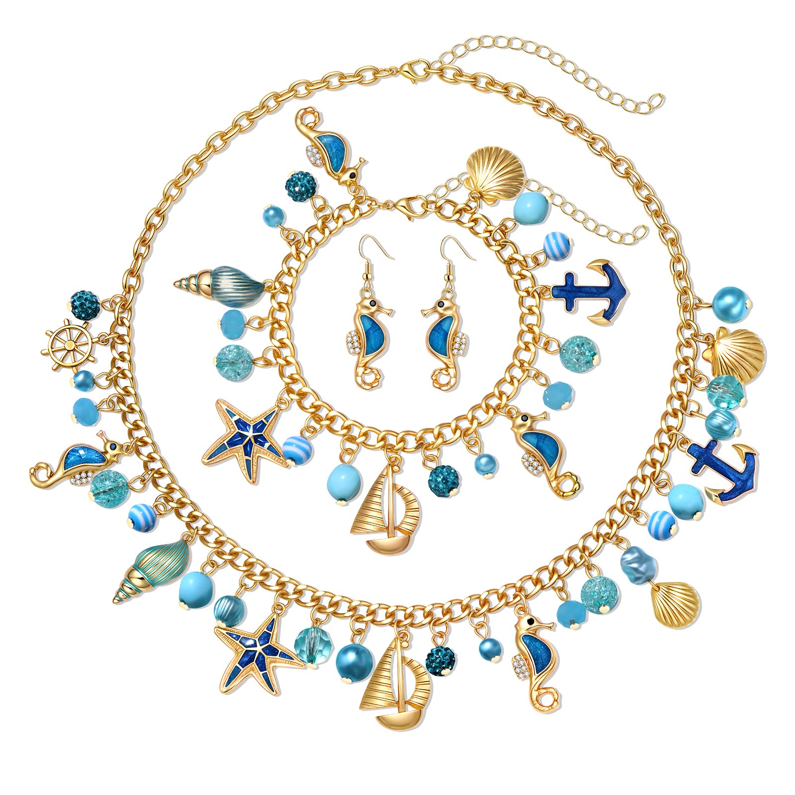 MOLOCH Seashell Jewelry Set Starfish Seahorse Seashell Necklace Bracelet Earrings Boho Summer Beach Jewelry Mermaid Costume Accessories for Women