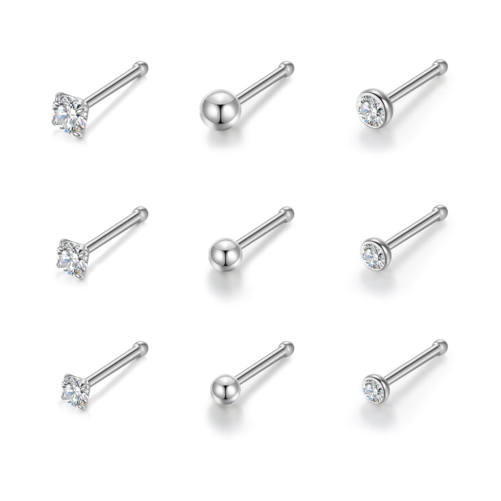 Size: 9pcs straight nose rings studs silver set,20G (0.8mm), Pin Length: 7mm, 6A CZ top size: 2mm/2.5mm/3mm. Titanium Nose Rings: Titanium is a highly stable corrosion resistance metal, making it an ideal material for body jewelry and accessories, it does not cause allergic reactions in the human bo