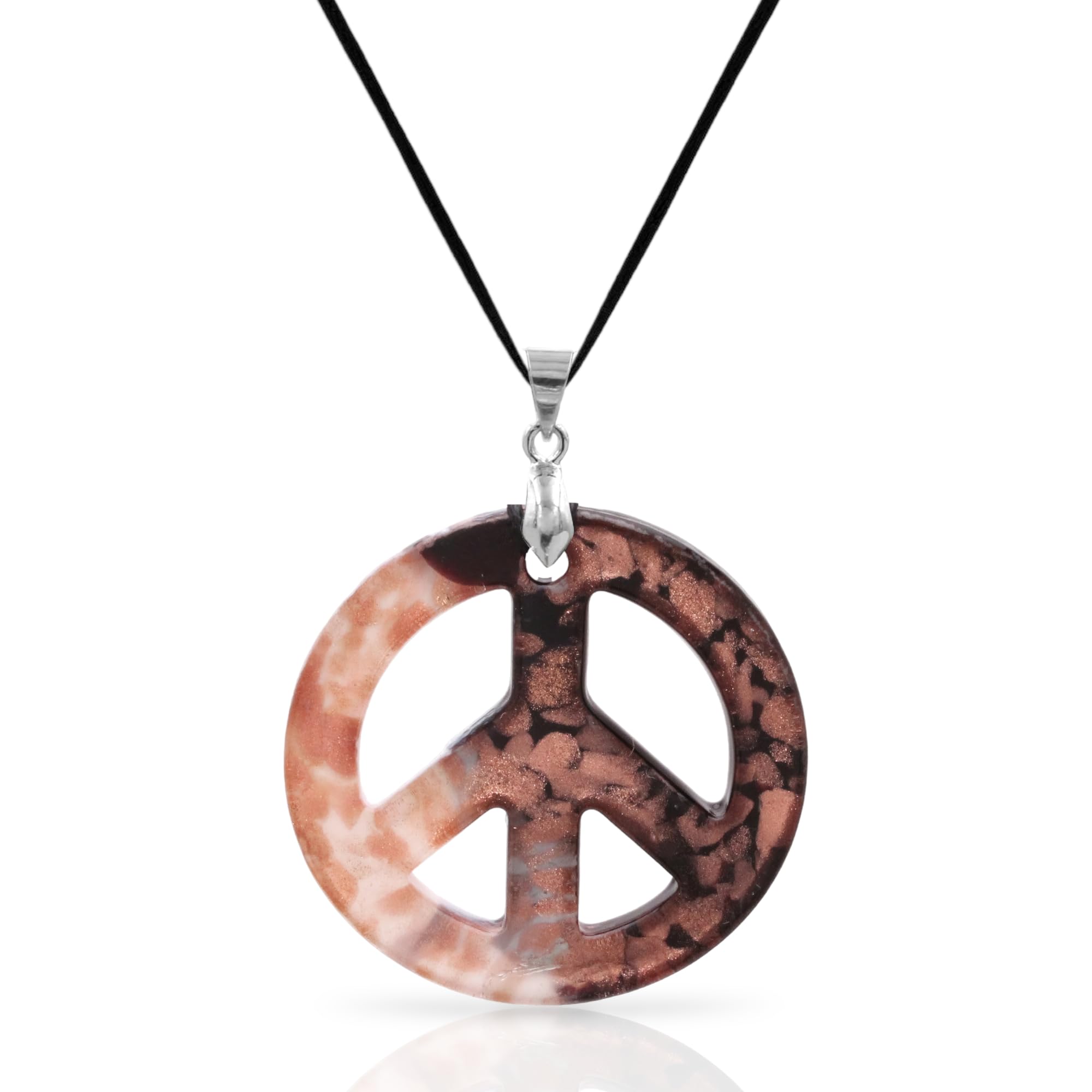 BESHEEK Murano Inspired Peace Sign Blown Glass Lampwork Art Pendant Necklace for Women Handcrafted Artisan Hypoallergenic Italian Style Jewelry