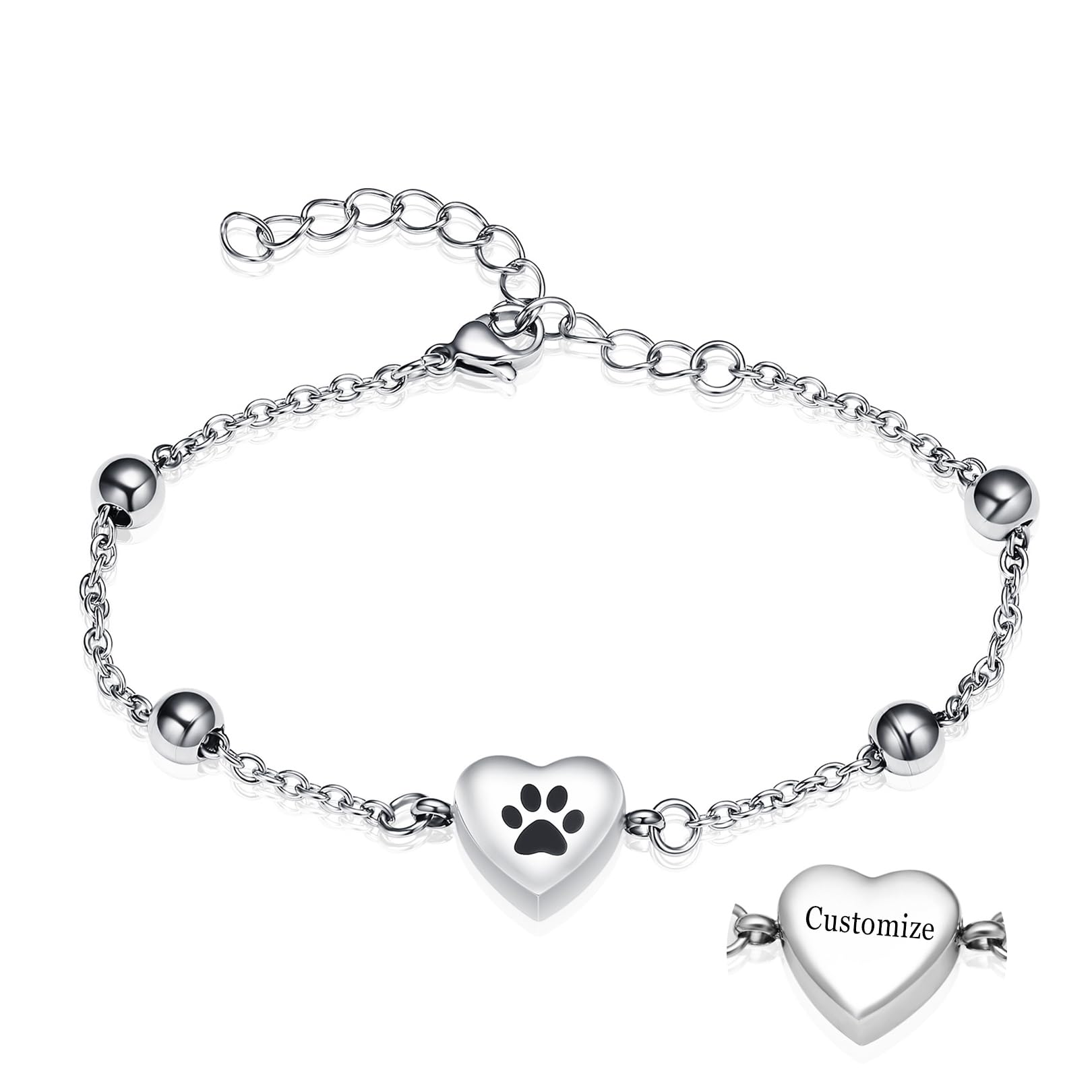 zeqingjw Pet Paw Urn Bracelet for Ashes Adjustable Heart Cremation Bracelet for Pets Ashes Stainless Steel Dog Cat Cremation Jewelry Memorial Keepsake