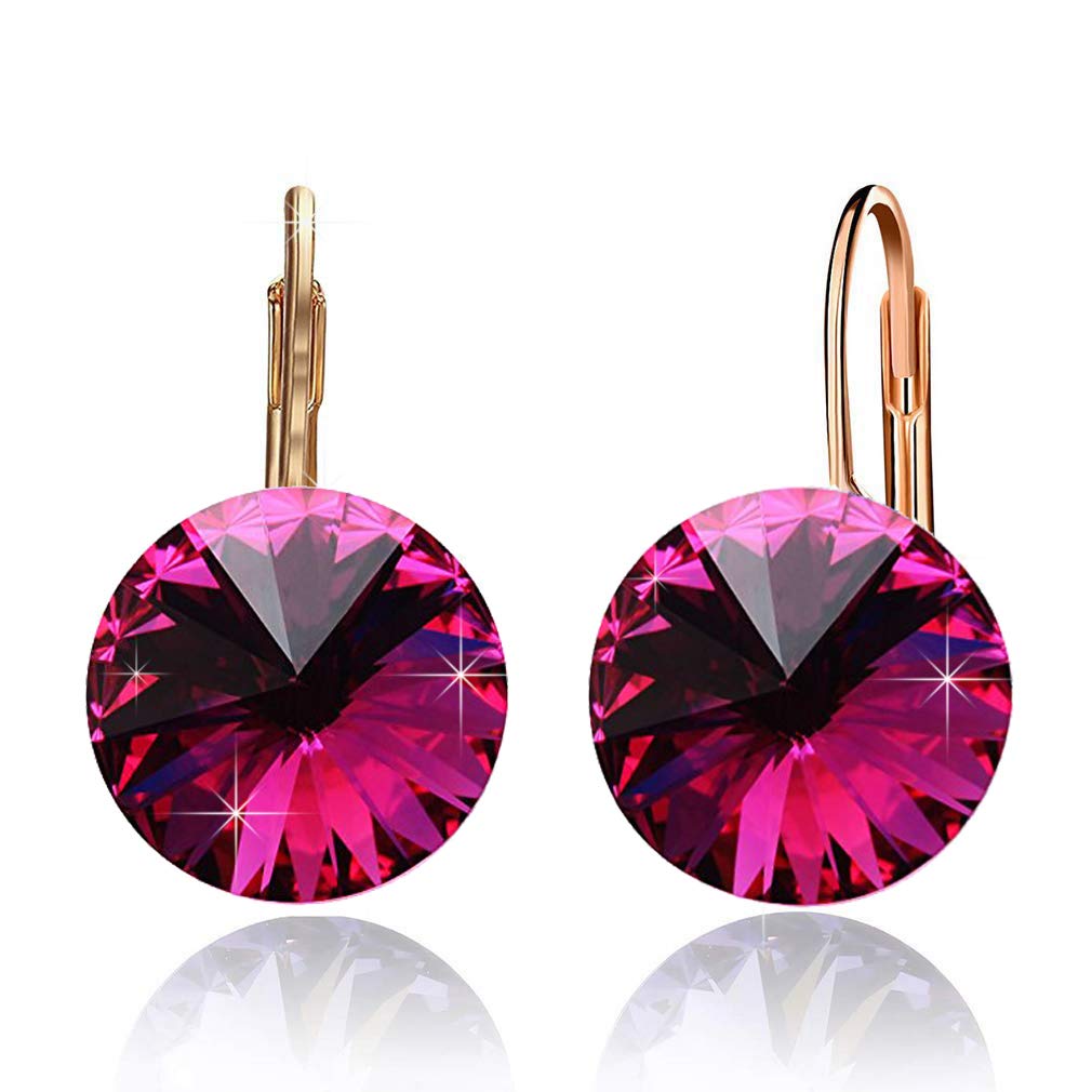 Austrian Crystal Round Drop Earrings for Women 14K Gold Plated Hypoallergenic Leverback Hoop Earrings