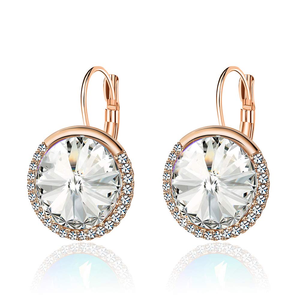 Round Austrian Crystal Halo Drop Leverback Earrings for Women 14K Gold Plated Hypoallergenic Earrings