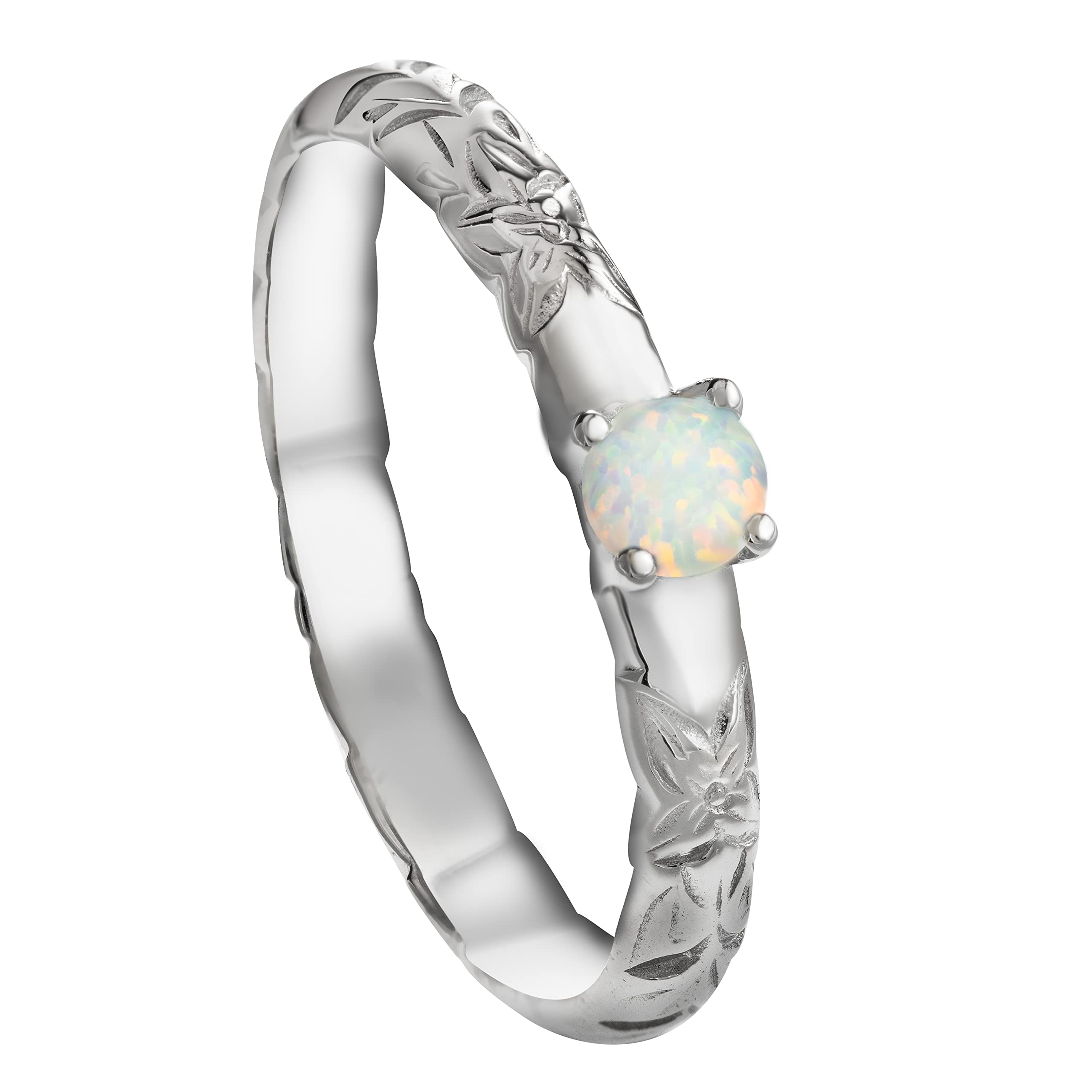 925 Sterling Silver Hawaiian Heirloom Princess Plumeria Flower Scroll Ring Stackable Wedding Engagement Promise Band, Topaz, Opal, D VVS1 Moissanite