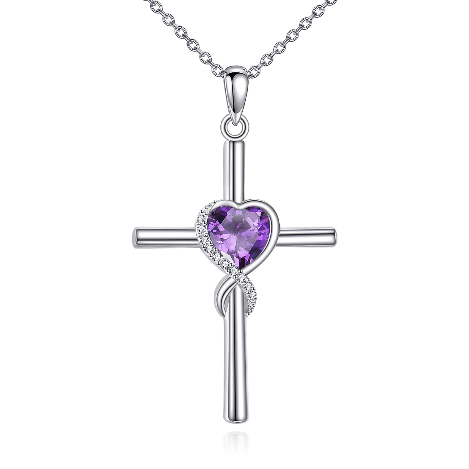 AINFQY S925 Sterling Silver Cross Necklace for Women Birthstone Necklace Heart Infinity Cross Pendant Necklace Christmas Valentines Day Gifts Birthday