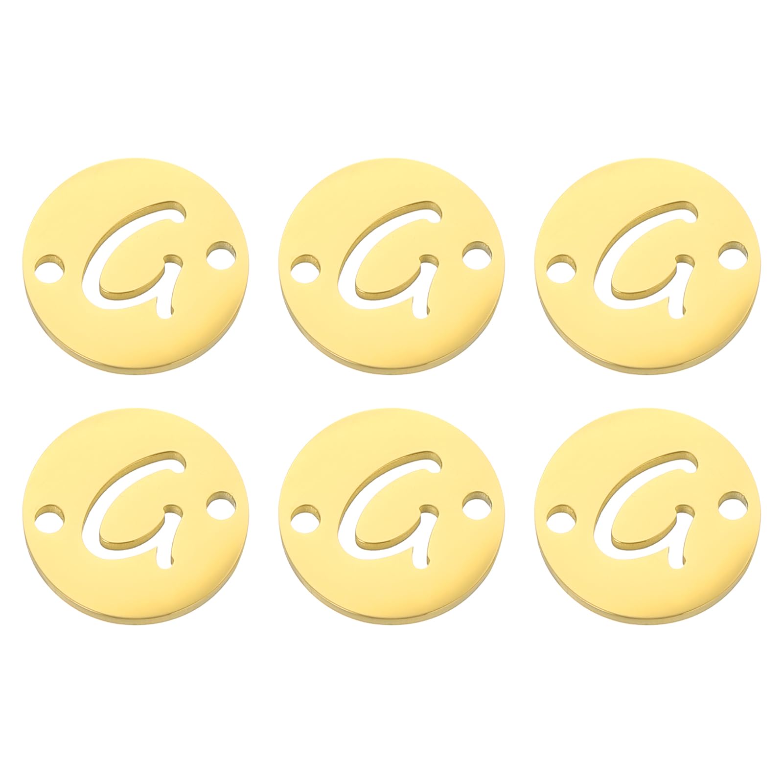 Package and Size: Diameter: 13mm/0.51inch; Hole Diameter: 1.5mm/0.06inch; Thicknesses: 1mm/0.04inch; Package Content: 6 Pcs G Letter Charm Good-Quality Material: These letter pendants are made of stainless steel, which is stable, strong, not easy to rust, has a smooth and glossy surface, easy for je