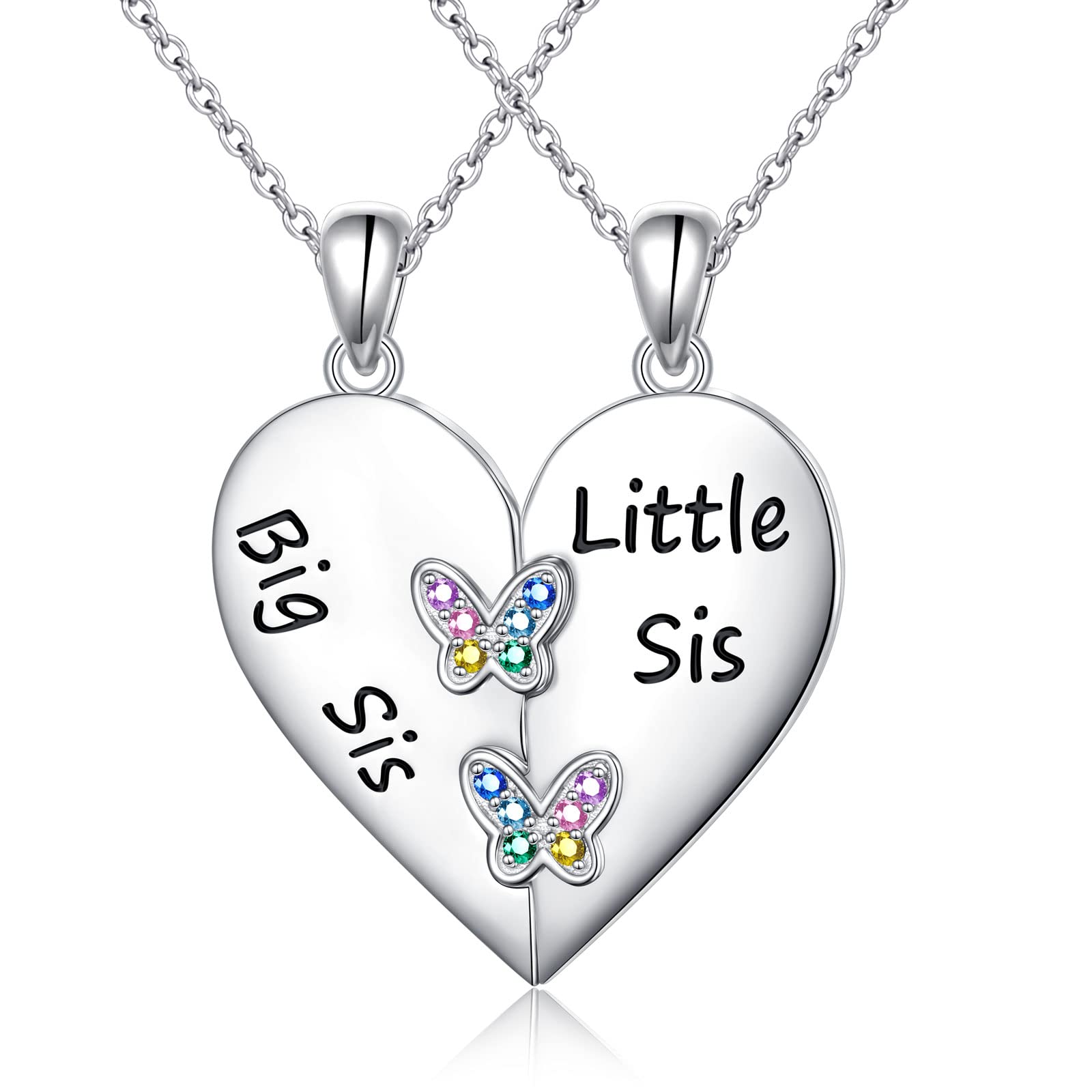 Alphm S925 Sterling Silver Mother Daughter Sisters Family Necklaces for 2 Matching Heart Jewelry for Mom Big Sis Little Sis